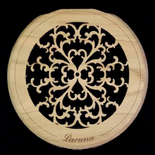 Lacuna Acoustic Art inserts are designed to adorn and enhance your acoustic instrument while effectively reducing feedback on amplified instruments. They are engineered using light weight laminated wood to create a strong and low mass insert, installing easily without the use of tools.